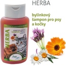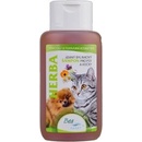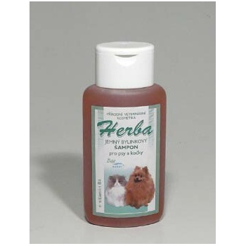 - Jemný bylinkový šampón pre psov a mačky obsahuje prírodné výťažky z liečivých rastlín - harmančeka pravého, nechtíka lekárskeho, oleja z levandule a je obohatený o bitamín B a špeciálne kondicionér. - Šampón preventívne zabraňuje kožným problémom zvieraťa a napomáha liečbe ľahších kožných ochorení, je určený tiež pre veľmi citlivú pokožku, ktorá je náchylná na rôzne alergie. Je bezpečný aj pre šteňatá a mačiatka. Vytvára bohatú penu, ktorá sa ľahko splachuje a jeho pH je neutrálny. Je vhodný pre všetky plemená psov a mačiek vrátane srsti mačiek perzských.